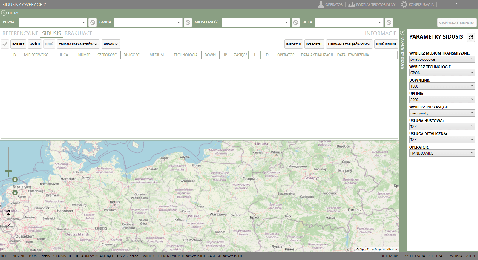 - Pobieranie adresów zasięgu sieci z serwisu SIDUSIS, jeżeli korzystamy z SIDUSIS API,